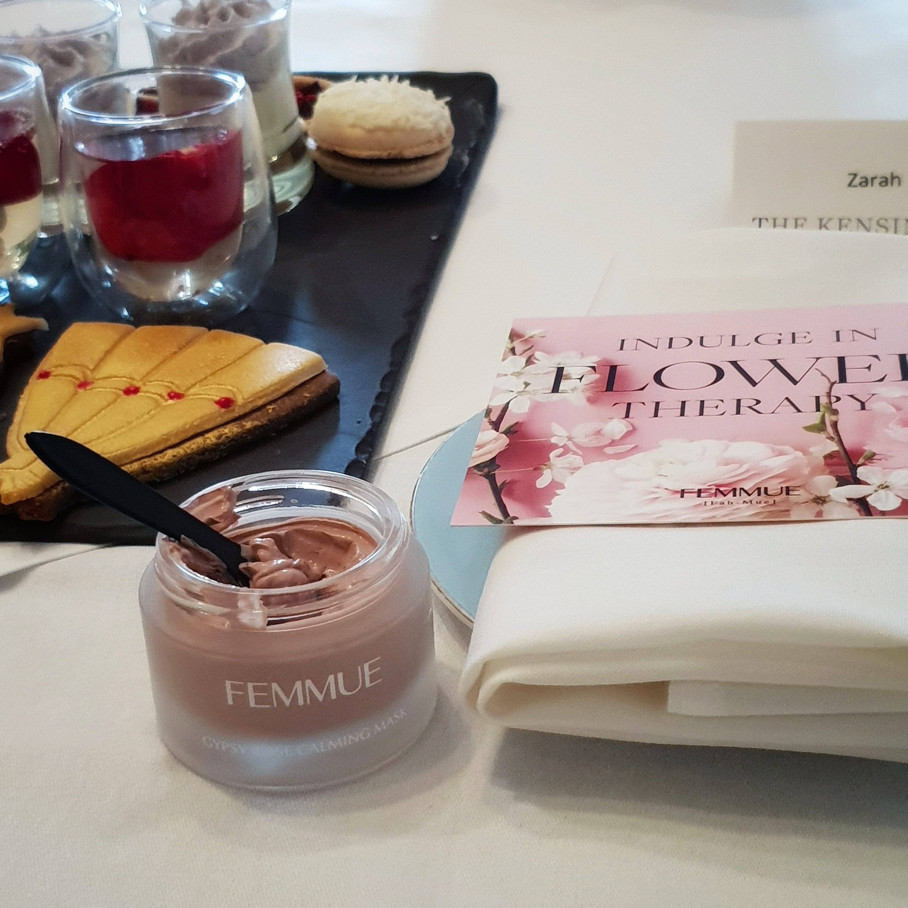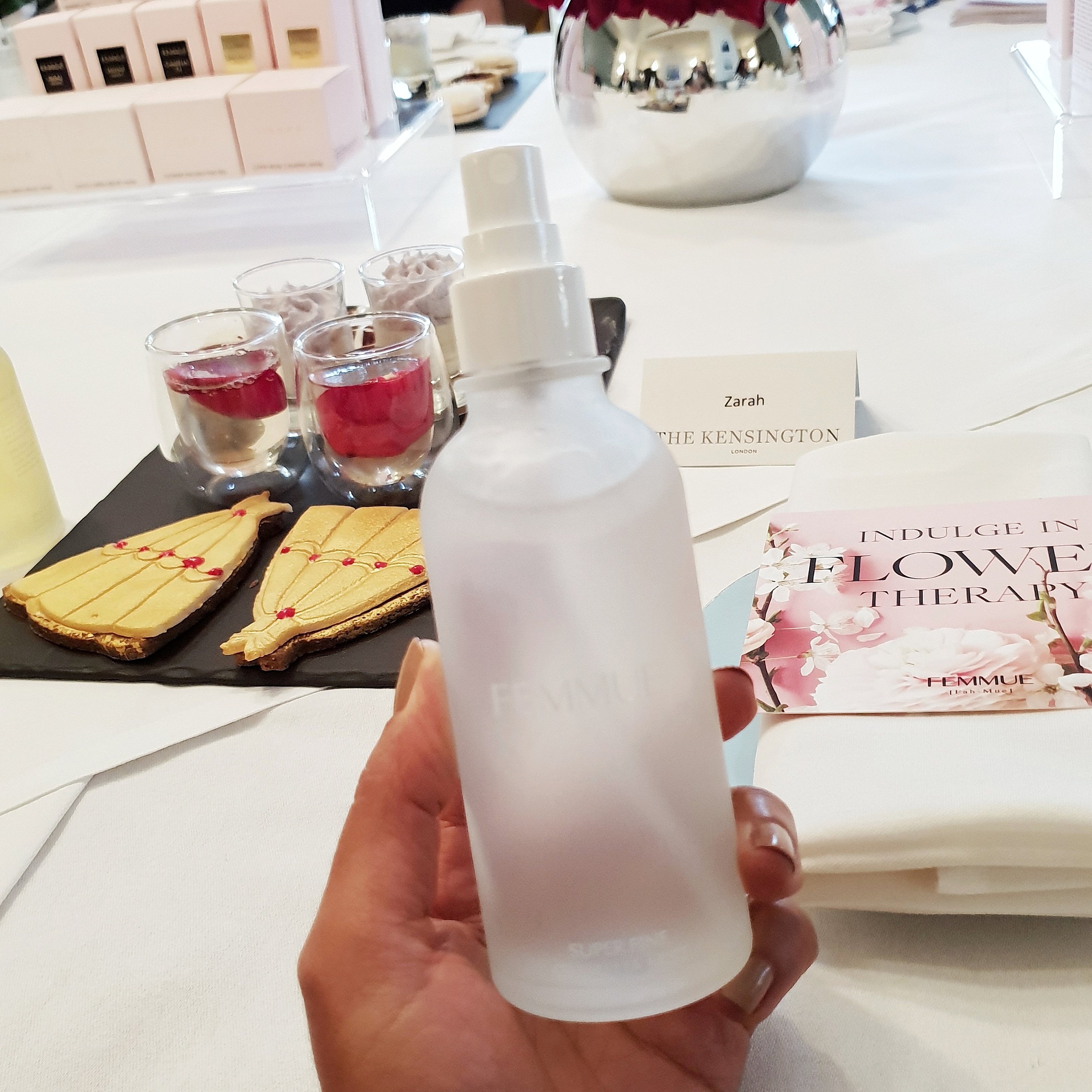 I was even more thrilled to be invited by Christine and Sun to a sumptuous afternoon tea experience in a plush hotel in South Kensington, London to meet the Founder of Femmue, Kelly Chung as she introduced her wonderful line to the UK. It’s always such a pleasure to meet a brand founder in person and truly my honour to talk more and highlight a brand that captivates me.